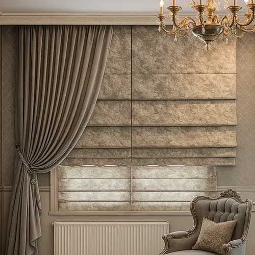 - پرده رومن (رومی) که از انواع پردههای جدید بوده و از یک پارچه بدون آستر تشکیل شده که دارای چینخوردگیهای متعدد بوده و در زمان جمع شدن از نظم و یکپارچگی بالایی برخوردار است.